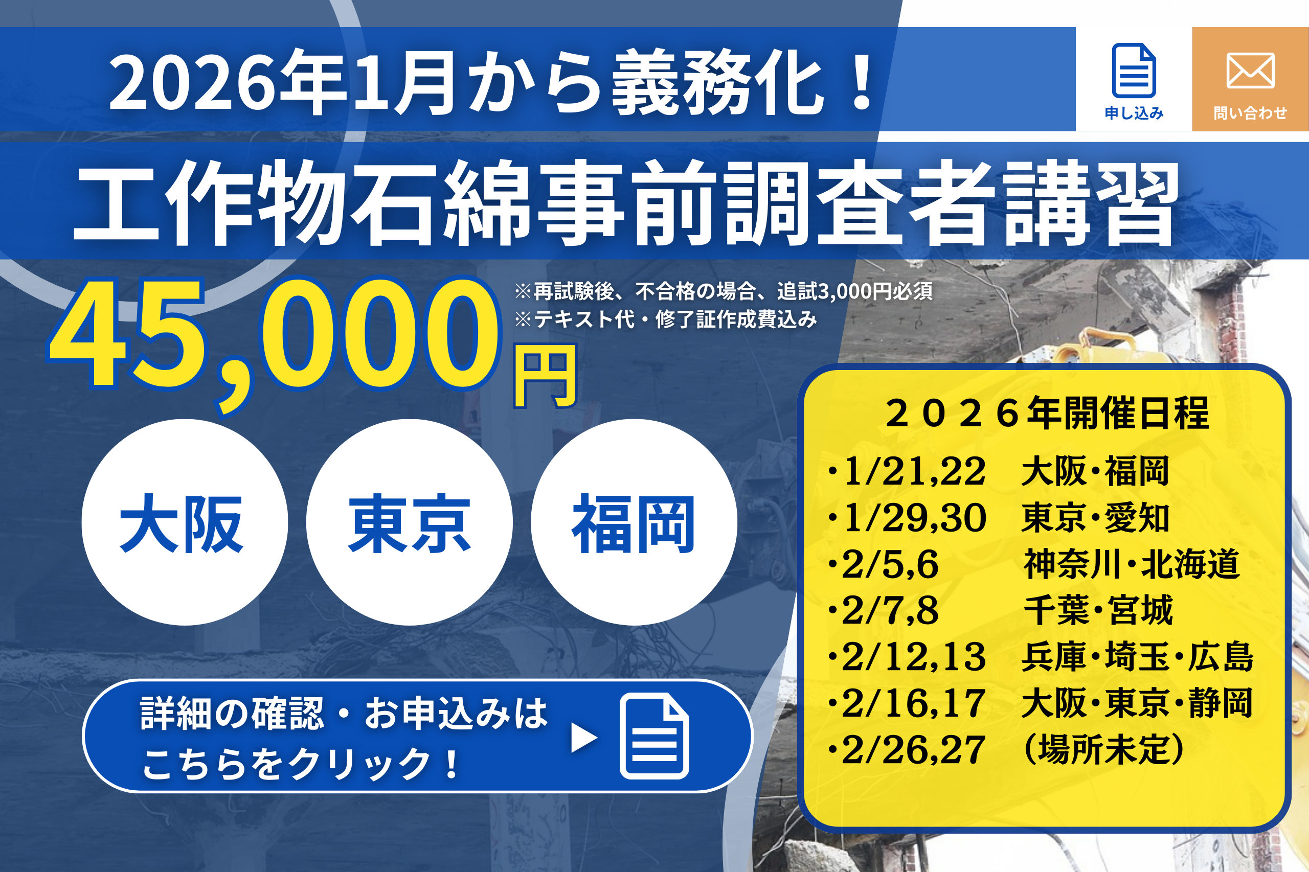 2026年1月から義務化へ ― “工作物” の石綿事前調査者が必要になります 建築物調査者との違いを徹底解説 石綿(アスベスト)対策に関する制度は、近年大きく変わっています。202...