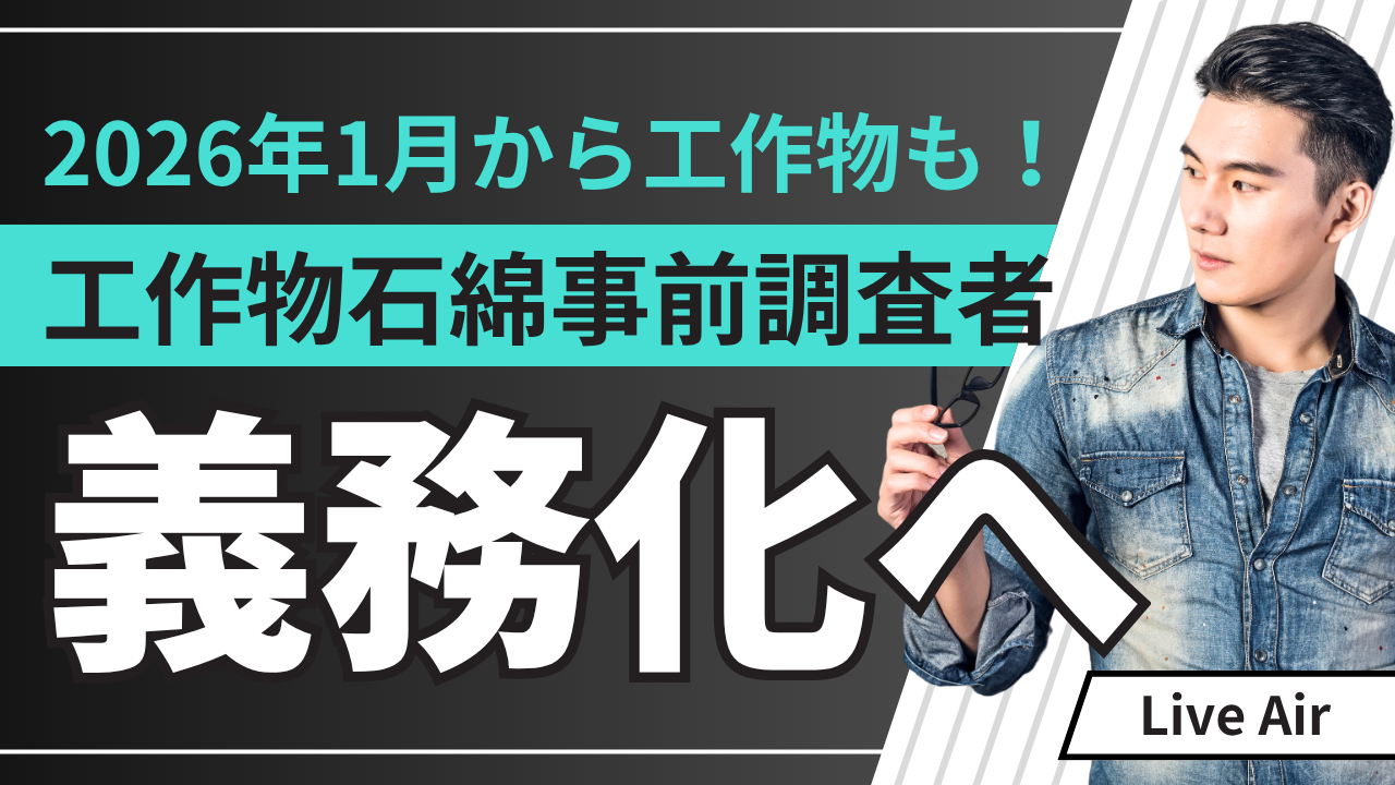 2026年1月から義務化へ ― “工作物” の石綿事前調査者が必要になります 建築物調査者との違いを徹底解説 石綿(アスベスト)対策に関する制度は、近年大きく変わっています。2023年10月には、建築...